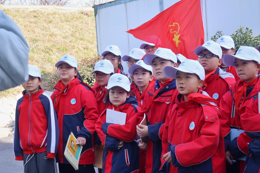 小學(xué)生在渠道旁聽(tīng)長(zhǎng)葛管理處工作人員講解南水北調(diào)知識(shí)