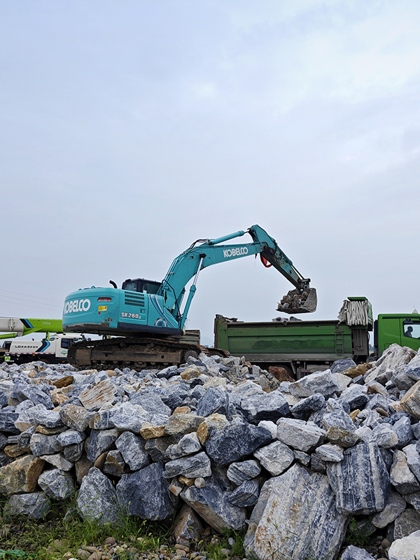 倒運塊石砌筑圍堰 加固裹頭防止直接沖刷