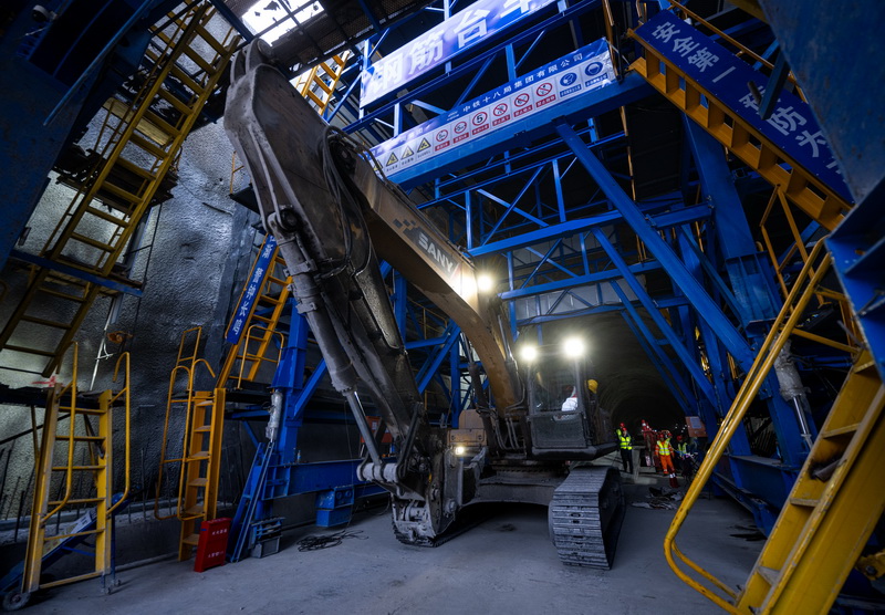 1月8日,在湖北省襄陽市保康縣馬良鎮拍攝的引江補漢工程輸水隧洞8號平洞施工現場。 新華社記者 肖藝九 攝