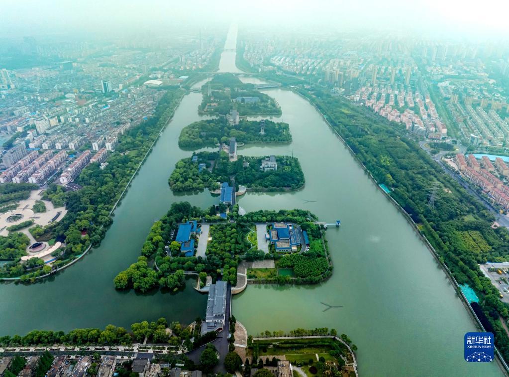 這是6月1日拍攝的位于江蘇省揚州市江都區(qū)的南水北調(diào)東線一期工程運鹽閘、邵仙套閘、邵仙閘洞(無人機照片)。