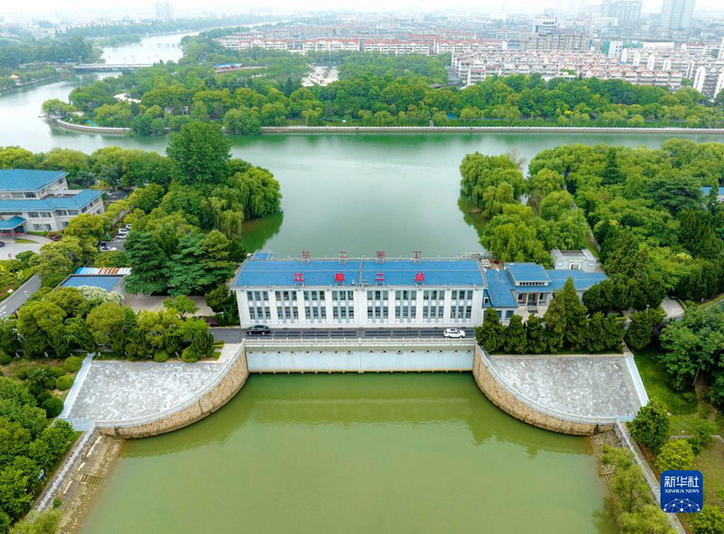這是6月1日拍攝的位于江蘇省揚州市江都區(qū)的南水北調(diào)東線源頭江都水利樞紐二站(無人機照片)。